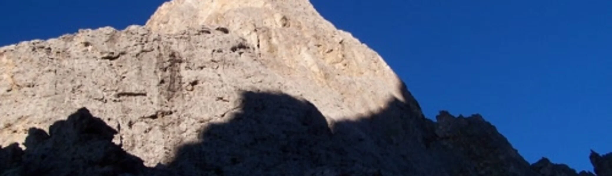 Am Campingplatz von Kolfuschg schlugen wir für die folgenden Tage unsere Zelte auf und machten uns auch gleich auf zur Nordwand der „Parte Oscura della Luna“. Dieses Felsmassiv befindet sich in unmittelbarer Nähe des Ortes und kann etwa mit „Teil der Rückseite des Mondes“ übersetzt werden. Dieser äußerst treffende Name wurde schon auf den ersten Metern der Tour „Indian Summer“ offensichtlich, da Dellen und Löcher in verschwenderischer Art die Route zierten. Die erhöhten Kletterschwierigkeiten im Grad VI+ wurden durch die reichliche Absicherung mit blitzenden Bohrhaken relativiert. Durch die Nächtigung in der Plattkkofelhütte fehlte uns jedoch die Zeit für einen kompletten Durchstieg der 200 m hohen Wand und so begnügten wir uns mit der ersten Seillänge dieser wunderbaren Route.