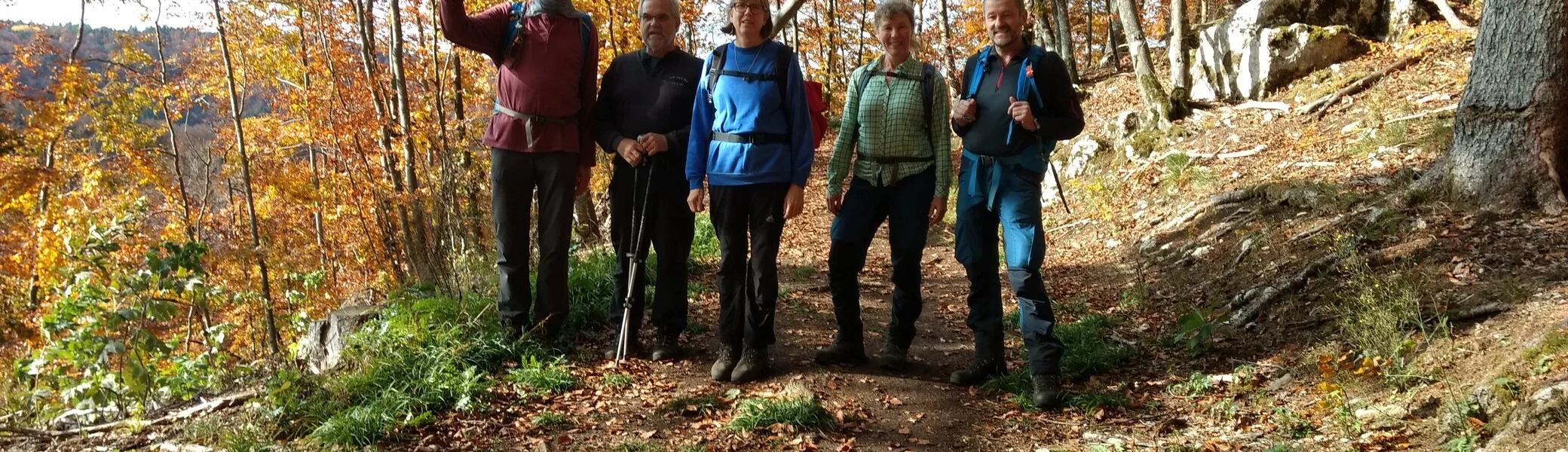 Mit sechs Personen wanderten wir von Fridingen aus über die Donau, an der Ziegelhütte vorbei hinauf zur Burgruine Kallenberg. In ständigem Auf und Ab ging es dem Donauberglandweg entlang bis zum Schloss Bronnen, dann, an der Bronner- und Jägerhaushöhle vorbei, hinab zur Donau. Nach der Überquerung ging es bergauf zum Knopfmacherfelsen und schließlich über den Stiegelesfelsen und den Laibfelsen zurück zum Parkplatz. Gutes Wetter, zahlreiche Aussichtspunkte und die herrliche Herbstfärbung hinterließen einen bleibenden Eindruck bei den Teilnehmern.